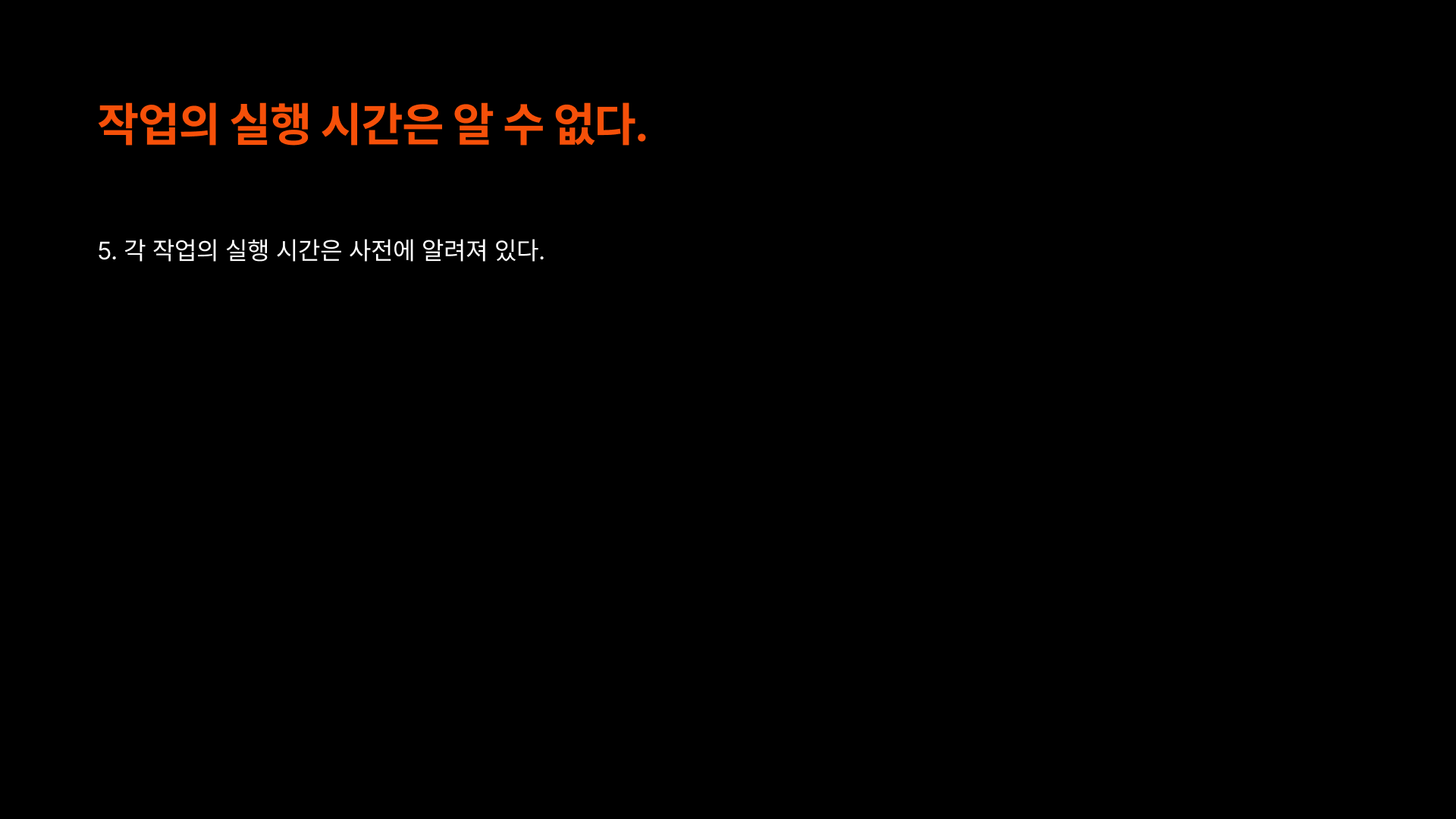 - 각 작업의 실행 시간은 사전에 알려져 있다.